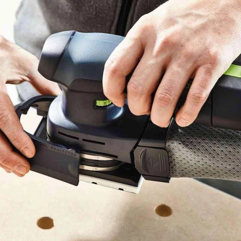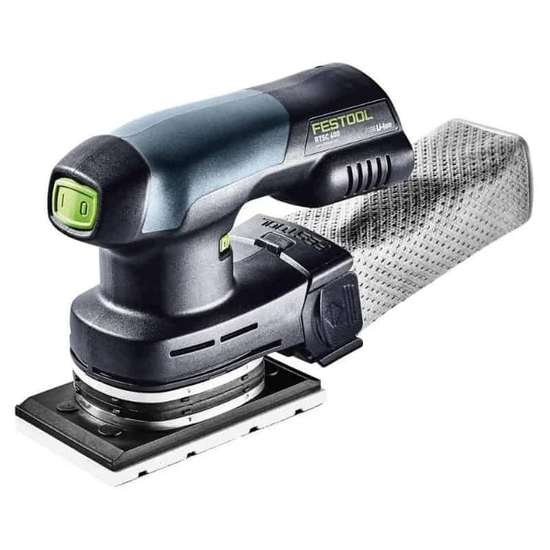 Mobile, compacte et légère, la ponceuse vibrante RTSC 400-Basic de Festool permet de travailler dans efforts au plafond, à la verticale ou dans les endroits restreints. Confortable, la poignée est revêtue de la matière SoftGrip et le commutateur permet d’utiliser la ponceuse de la main gauche ou droite.