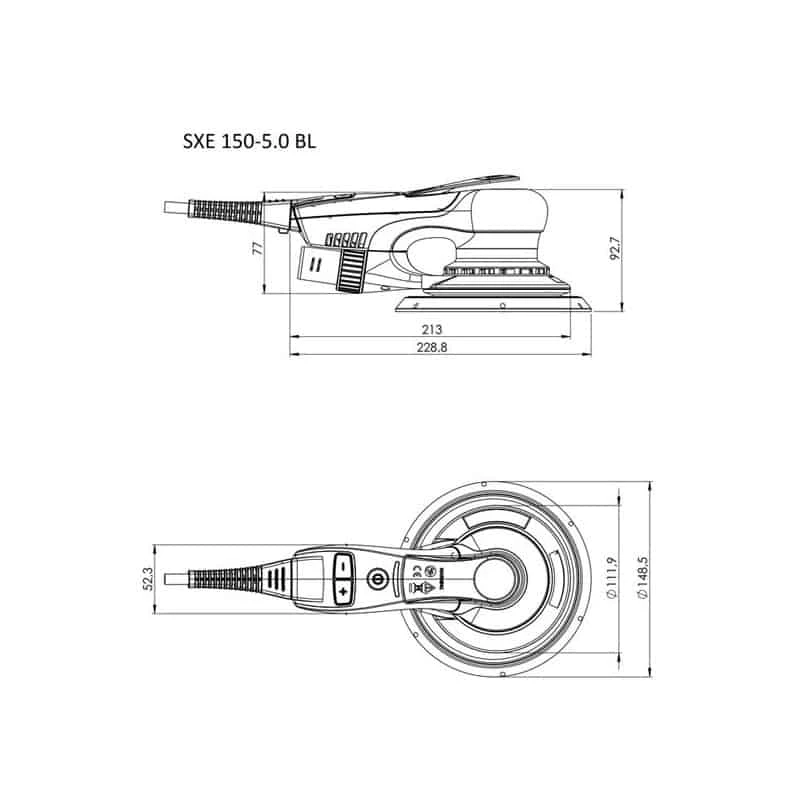 Pour travailler avec des vitesses adaptées aux matériaux et qui restent quasiment constantes en charge, la SXE 150-5.0 BL est pourvue d’un système électronique “Vario-Tacho-Constamatic (VTC)”. Par ailleurs, elle est dotée d’une molette de préréglage électronique de la vitesse désirée.