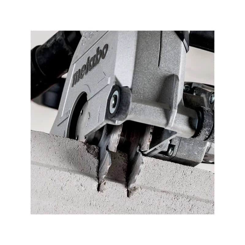 À utiliser exclusivement avec des meules de tronçonnage diamnatées, la rainureuse à béton METABO MFE 40 a été conçue pour le tronçonnage ou le rainurage de matériaux minéraux comme le béton armé, la maçonnerie et les revêtements routiers, sans utilisation d’eau.