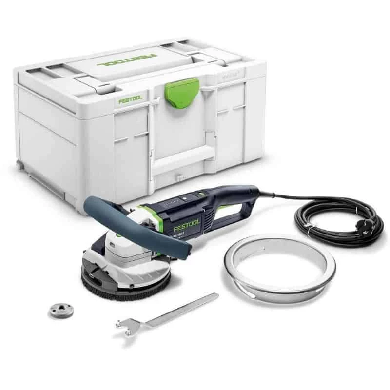 Poncer du sol jusqu’au mur avec la ponceuse de rénovation Festool RG 130 E. Pour les travaux de rénovation, l’élimination du béton, du ciment ou encore des revêtements sur supports durs, cette ponceuse Festool est idéale. Adaptée pour le traitement de grandes surfaces ou des utilisations locales sur les murs, les plafonds ou les sols, la RG 130 E élimine rapidement les irrégularités.